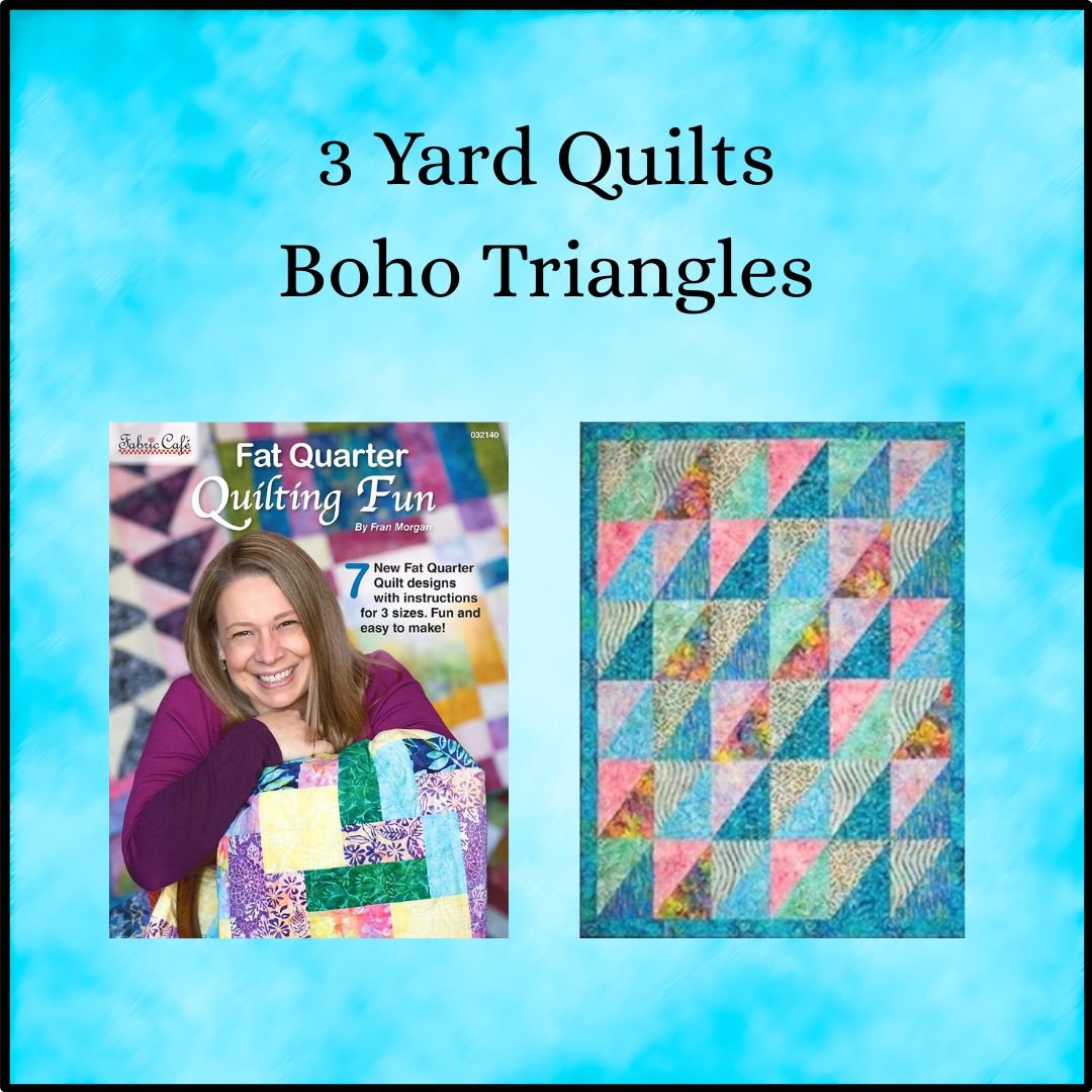 Join instructor Pat on a 3-yard journey and make a quilt in a day. Learn the tips and tricks of these quick projects, using the Fabric Cafe series of books by Fran Morgan. Expand your creativity with these simplified piecing projects.