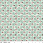 This fabric features a charming design with a light mint green background adorned with a repeating pattern of small, delicate floral bouquets in shades of pink and red, framed by a subtle plaid grid. The floral elements are evenly spaced, creating a harmonious and quaint aesthetic that is both timeless and versatile, perfect for a variety of sewing projects from quilting to apparel.